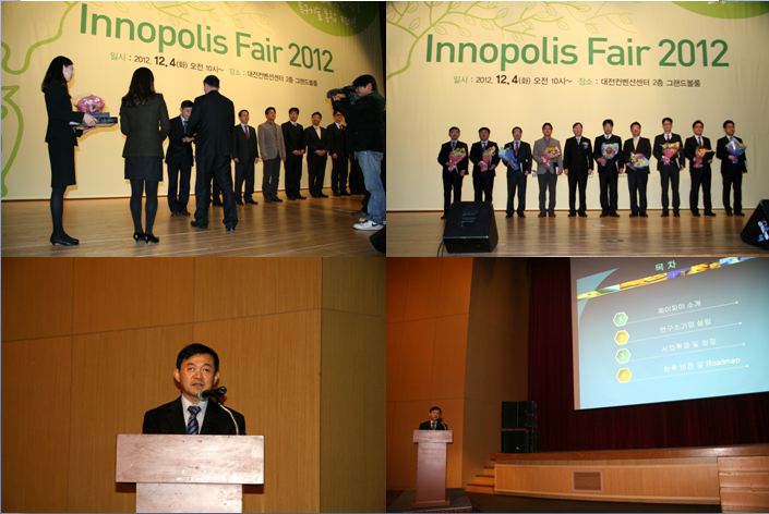 2012³â 12¿ù 4ÀÏ Innopolis Fair 2012, Ư±¸±â¼ú»ç¾÷È´ë»ó ±â¾÷ºÎ¹® 'Áö°æºÎ Àå°ü»ó'À» ¼ö»óÇϰí, ´ëÇ¥ ¿ì¼ö±â¾÷À¸·Î½á ¼º°ø»ç·Ê¹ßÇ¥¸¦ ÇÔ.